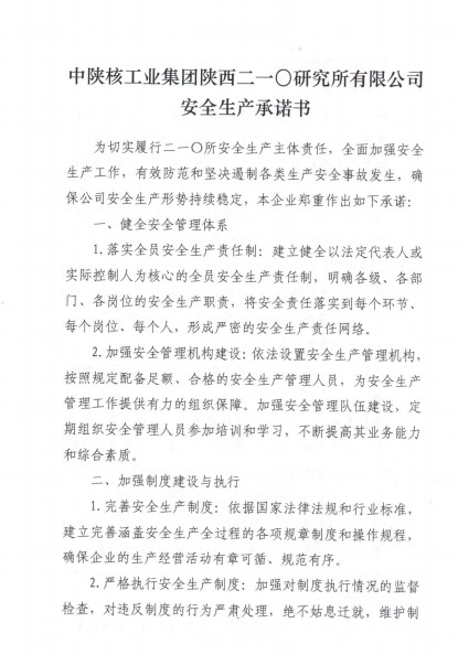 二一〇所安全生产承诺书